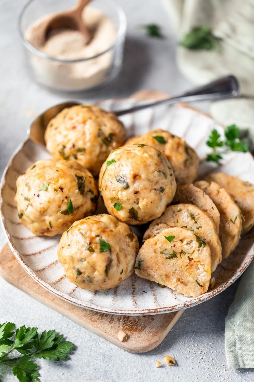 Fluffy dumplings made from bread, potatoes, or semolina, served alongside hearty meat dishes.